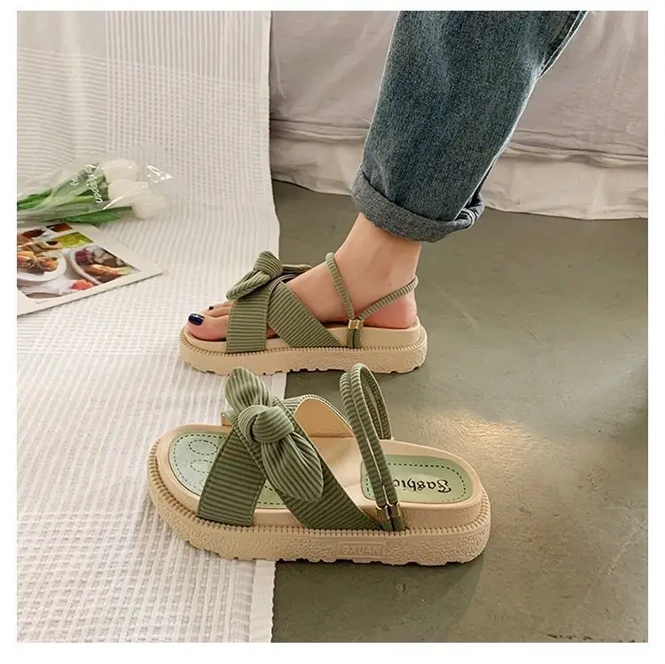 Internet Celebrous Explosions With Skirt Sandals Women’s Summer Fairy Style 2023 New Fashion Student Thick-soled Roman Flats